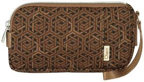 A colorful clutch to stow your on-the-go essentials. Featuring a zip closure and a hand strap that easily fits your wrist. Enjoy lined storage area for sunglasses or your cell phone (fits 6.5” display phones) and 4 credit card slots.